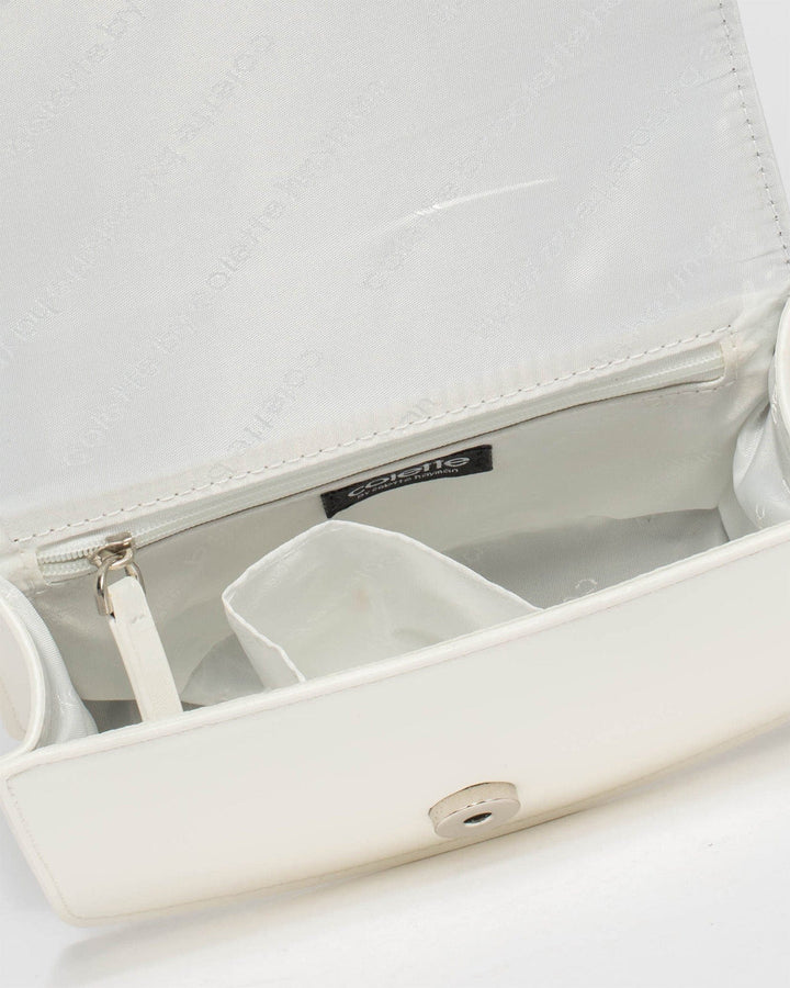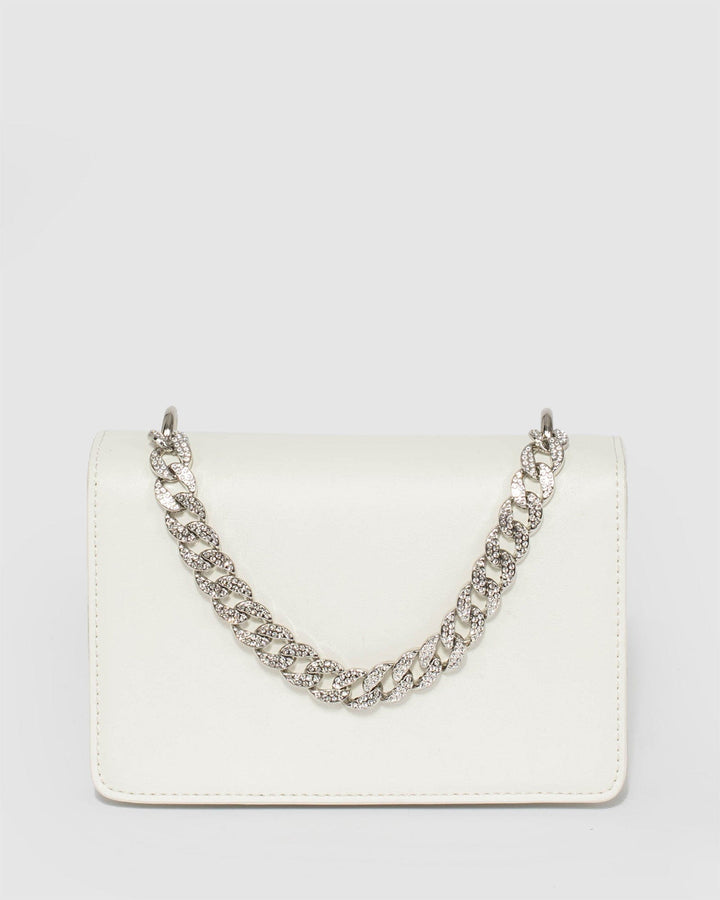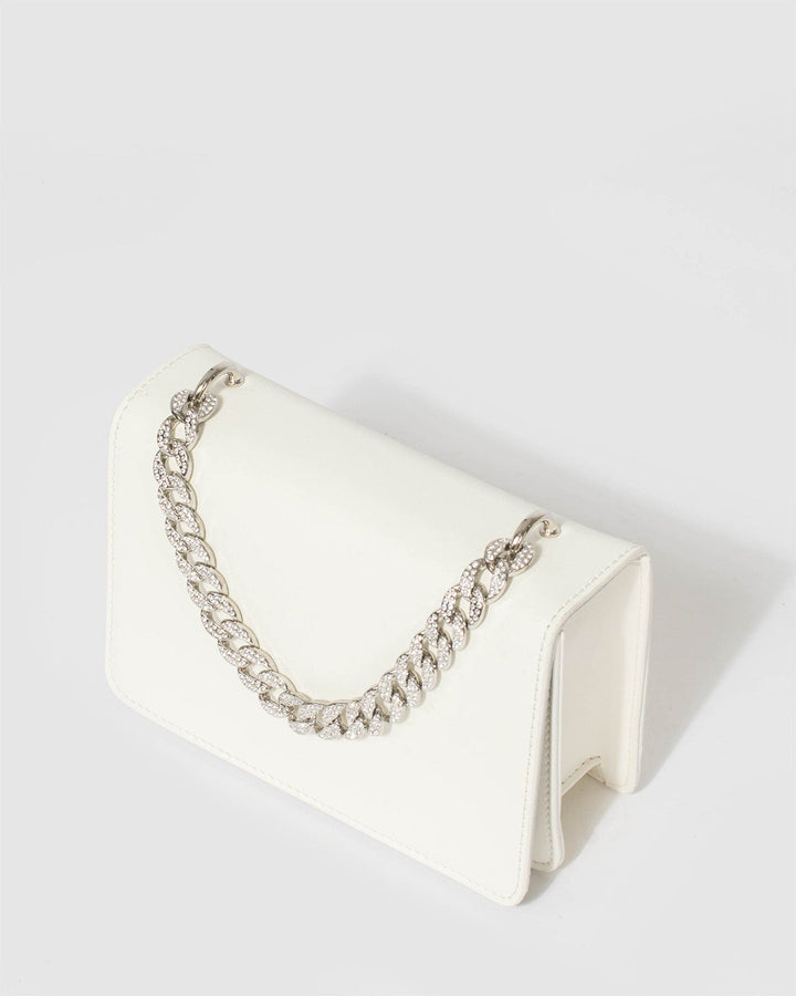 Colette by Colette Hayman White Fleur Crystal Chain Bag