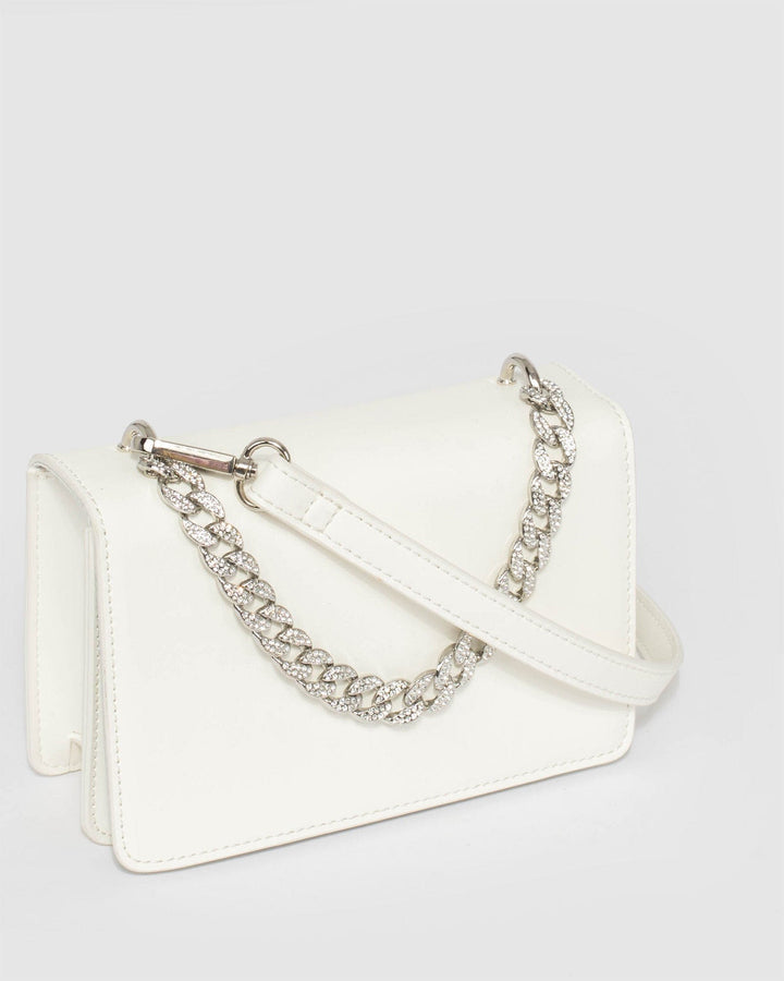 White Fleur Crystal Chain Bag