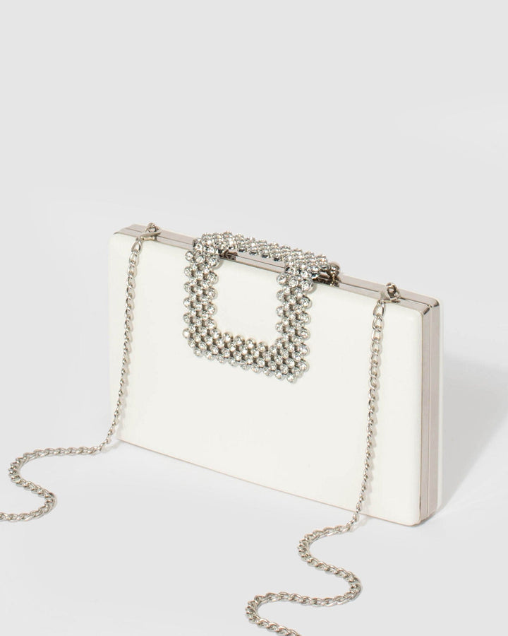 White Karima Crystal Clutch Bag