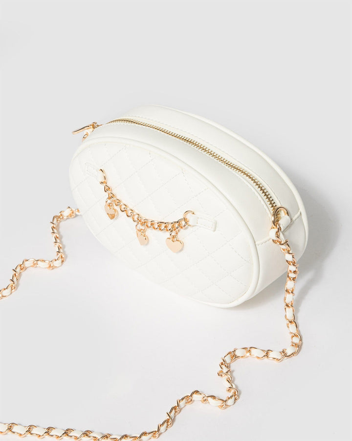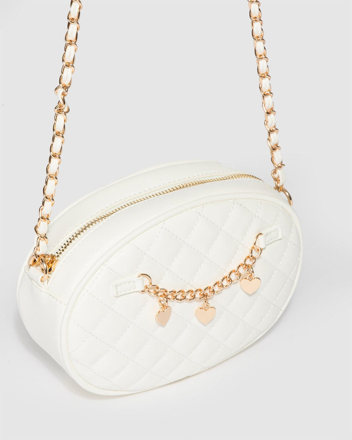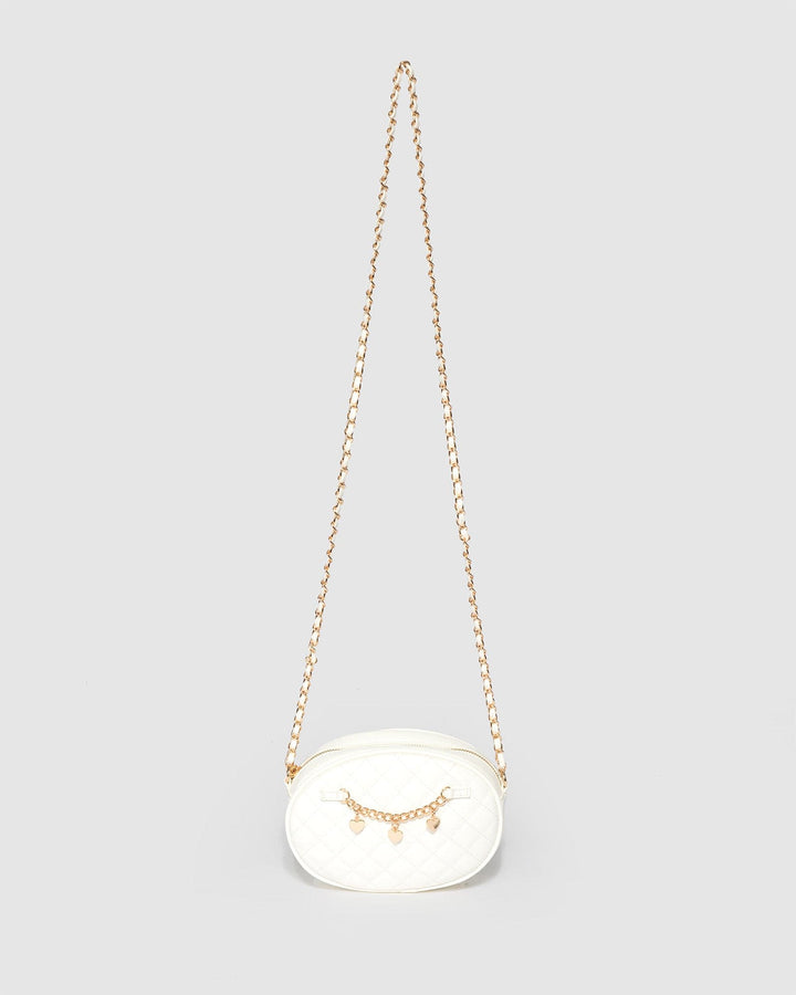 White Lilly Quilted Chain Crossbody Bag