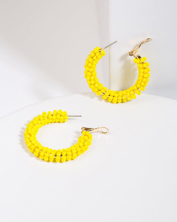 Yellow Beaded Cluster Hoop Earrings